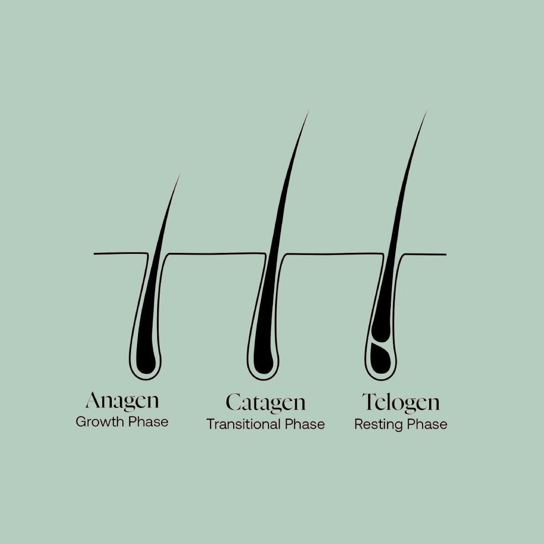 The Hair Growth Cycle includes three stages: the Anagen, Catagen and Telogen Phases, which are also known as the Growth, Transition and Resting Phases.