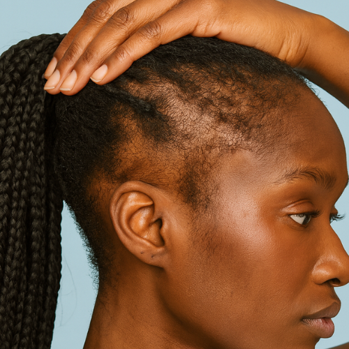 Tight hairstyles like braids or weaves pull on the roots, leading to hair loss along the hairline or temples.